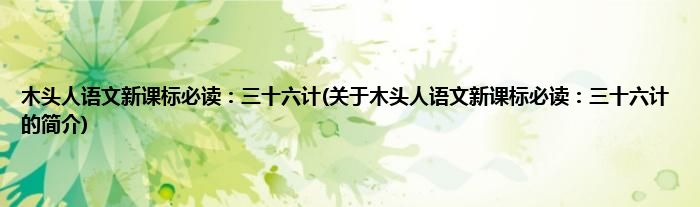 大家好,木头人语文新课标必读:三十六计,关于木头人语文新课标必读:三十六计的简介很多人还不知道,现在让我们一起来看看吧!