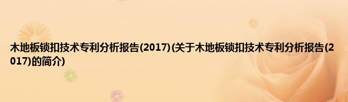 木地板锁扣技术专利分析报告(2017)(关于木地板锁扣技术专利分析报告(2017)的简介)