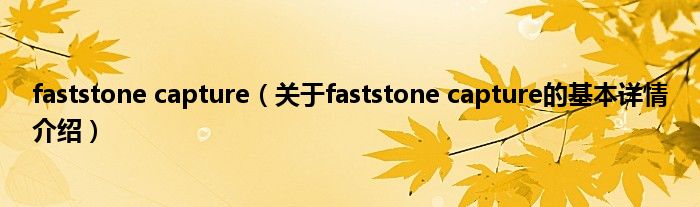 本文关于faststone capture的基本详情介绍就讲解完毕,希望对大家有所帮助。