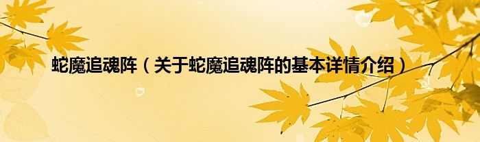 本文关于蛇魔追魂阵的基本详情介绍就讲解完毕,希望对大家有所帮助。