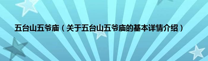 本文关于五台山五爷庙的基本详情介绍就讲解完毕,希望对大家有所帮助。