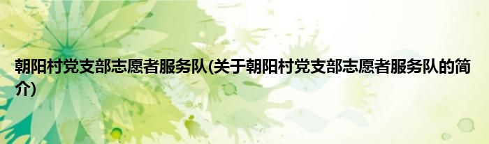 本文关于朝阳村党支部志愿者服务队的简介就讲解完毕,希望对大家有所帮助。