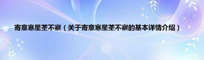 寄意寒星荃不察(关于寄意寒星荃不察的基本详情介绍)
