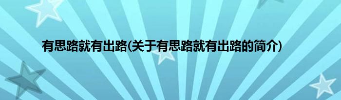 本文关于有思路就有出路的简介就讲解完毕,希望对大家有所帮助。