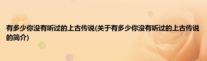 大家好,有多少你没有听过的上古传说,关于有多少你没有听过的上古传说的简介很多人还不知道,现在让我们一起来看看吧!