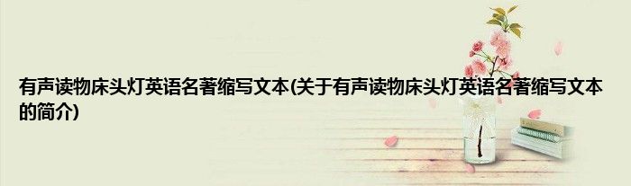 本文关于有声读物床头灯英语名著缩写文本的简介就讲解完毕,希望对大家有所帮助。