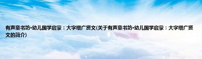 本文关于有声童书坊·幼儿国学启蒙:大字增广贤文的简介就讲解完毕,希望对大家有所帮助。
