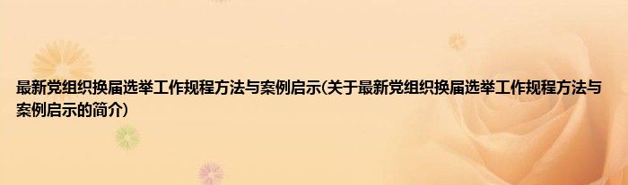 本文关于最新党组织换届选举工作规程方法与案例启示的简介就讲解完毕,希望对大家有所帮助。