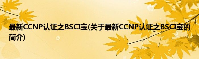 大家好,最新CCNP认证之BSCI宝,关于最新CCNP认证之BSCI宝的简介很多人还不知道,现在让我们一起来看看吧!