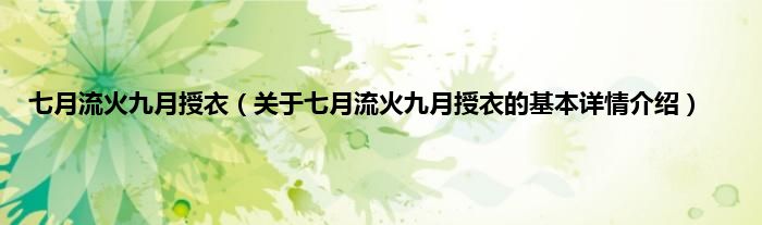 本文关于七月流火九月授衣的基本详情介绍就讲解完毕,希望对大家有所帮助。