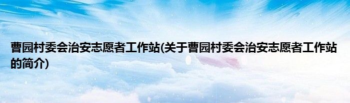 本文关于曹园村委会治安志愿者工作站的简介就讲解完毕,希望对大家有所帮助。