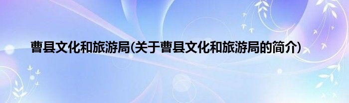 大家好,曹县文化和旅游局,关于曹县文化和旅游局的简介很多人还不知道,现在让我们一起来看看吧!