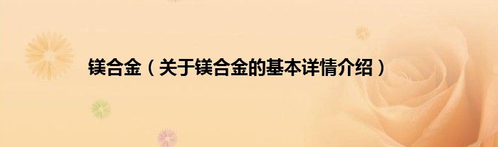 本文关于镁合金的基本详情介绍就讲解完毕,希望对大家有所帮助。