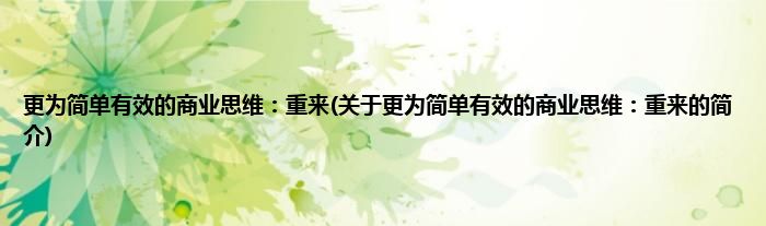 本文关于更为简单有效的商业思维:重来的简介就讲解完毕,希望对大家有所帮助。