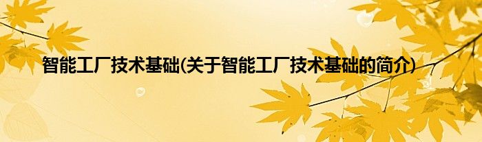 本文关于智能工厂技术基础的简介就讲解完毕,希望对大家有所帮助。