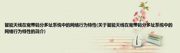 智能天线在宽带码分多址系统中的网络行为特性(关于智能天线在宽带码分多址系统中的网络行为特性的简介)