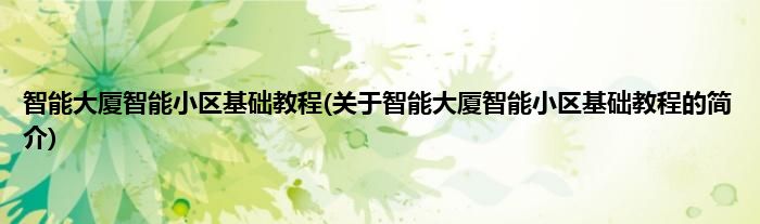 大家好,智能大厦智能小区基础教程,关于智能大厦智能小区基础教程的简介很多人还不知道,现在让我们一起来看看吧!