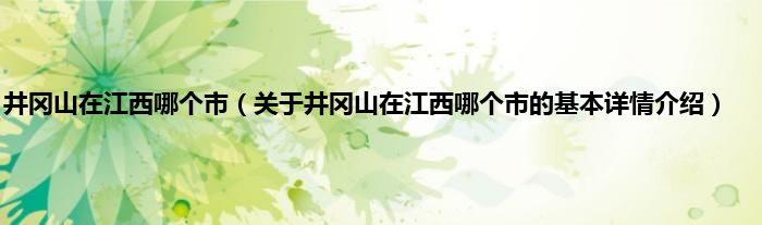 本文关于井冈山在江西哪个市的基本详情介绍就讲解完毕,希望对大家有所帮助。