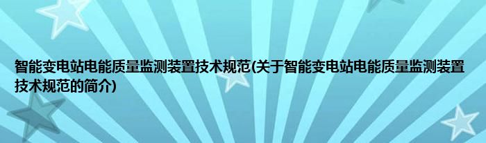 本文关于智能变电站电能质量监测装置技术规范的简介就讲解完毕,希望对大家有所帮助。