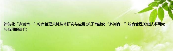 大家好,智能化“多测合一”综合管理关键技术研究与应用,关于智能化“多测合一”综合管理关键技术研究与应用的简介很多人还不知道,现在让我们一起来看看吧!