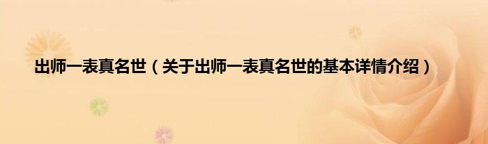 本文关于出师一表真名世的基本详情介绍就讲解完毕,希望对大家有所帮助。