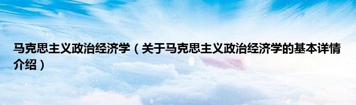 本文关于马克思主义政治经济学的基本详情介绍就讲解完毕,希望对大家有所帮助。