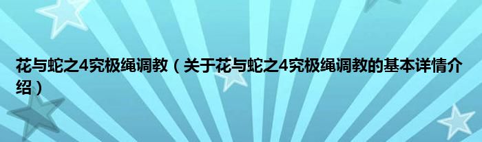 花与蛇之4究极绳调教(关于花与蛇之4究极绳调教的基本详情介绍)