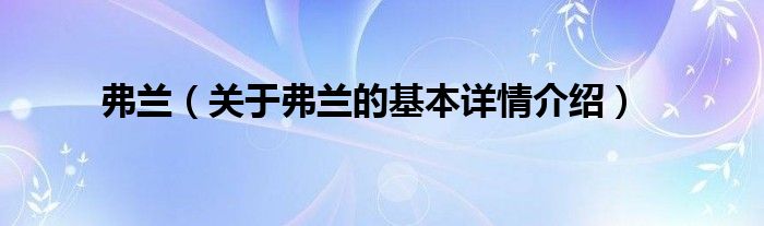 本文关于弗兰的基本详情介绍就讲解完毕,希望对大家有所帮助。