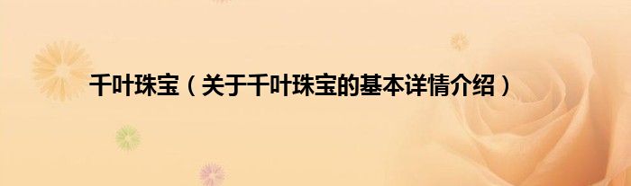 本文关于千叶珠宝的基本详情介绍就讲解完毕,希望对大家有所帮助。