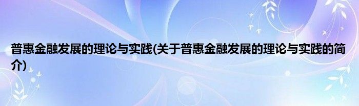 本文关于普惠金融发展的理论与实践的简介就讲解完毕,希望对大家有所帮助。