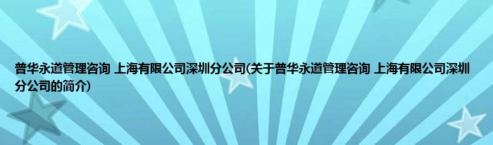 本文关于普华永道管理咨询 上海有限公司深圳分公司的简介就讲解完毕,希望对大家有所帮助。