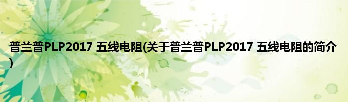 本文关于普兰普PLP2017 五线电阻的简介就讲解完毕,希望对大家有所帮助。
