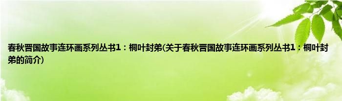春秋晋国故事连环画系列丛书1:桐叶封弟(关于春秋晋国故事连环画系列丛书1:桐叶封弟的简介)