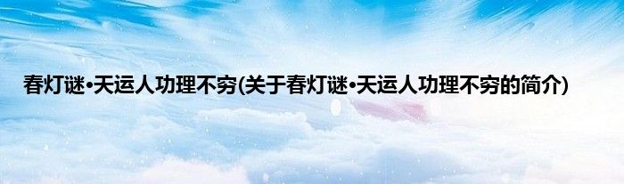 大家好,春灯谜·天运人功理不穷,关于春灯谜·天运人功理不穷的简介很多人还不知道,现在让我们一起来看看吧!