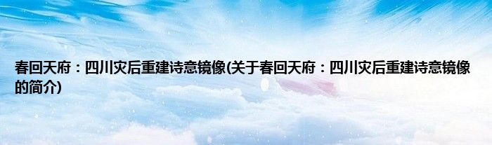本文关于春回天府:四川灾后重建诗意镜像的简介就讲解完毕,希望对大家有所帮助。