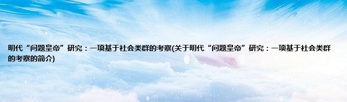 大家好,明代“问题皇帝”研究:一项基于社会类群的考察,关于明代“问题皇帝”研究:一项基于社会类群的考察的简介很多人还不知道,现在让我们一起来看看吧!