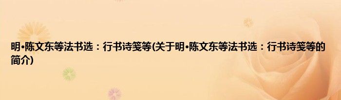 1、 《明·陈文东等法书选:行书诗笺等》是历代法书真迹萃编系列之一。
