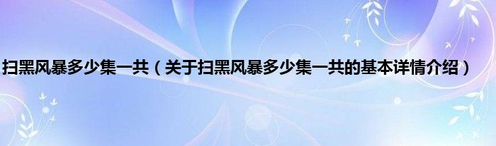 本文关于扫黑风暴多少集一共的基本详情介绍就讲解完毕,希望对大家有所帮助。