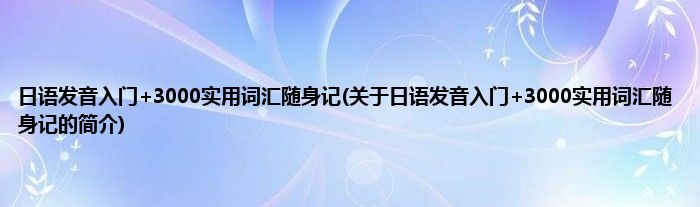 本文关于日语发音入门+3000实用词汇随身记的简介就讲解完毕,希望对大家有所帮助。