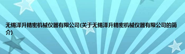 本文关于无锡泽升精密机械仪器有限公司的简介就讲解完毕,希望对大家有所帮助。