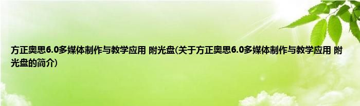 本文关于方正奥思6.0多媒体制作与教学应用 附光盘的简介就讲解完毕,希望对大家有所帮助。