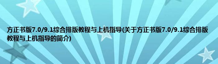 本文关于方正书版7.0/9.1综合排版教程与上机指导的简介就讲解完毕,希望对大家有所帮助。