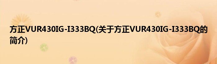 本文关于方正VUR430IG-I333BQ的简介就讲解完毕,希望对大家有所帮助。