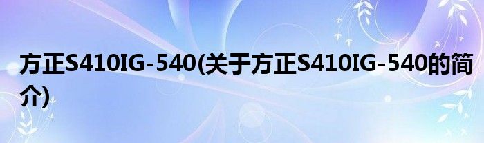 大家好,方正S410IG-540,关于方正S410IG-540的简介很多人还不知道,现在让我们一起来看看吧!