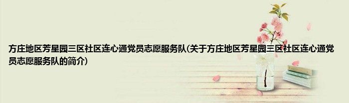 方庄地区芳星园三区社区连心通党员志愿服务队(关于方庄地区芳星园三区社区连心通党员志愿服务队的简介)