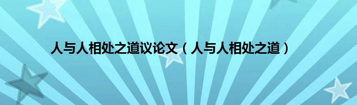 大家好,精选小编来为大家解答以上问题。人与人相处之道议论文,人与人相处之道很多人还不知道,现在让我们一起来看看吧!