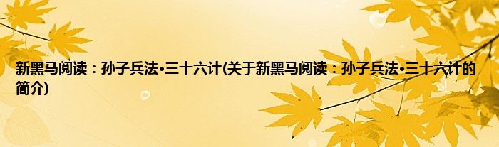 本文关于新黑马阅读:孙子兵法·三十六计的简介就讲解完毕,希望对大家有所帮助。
