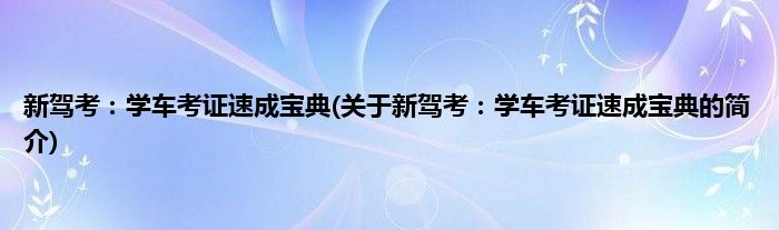 新驾考:学车考证速成宝典(关于新驾考:学车考证速成宝典的简介)
