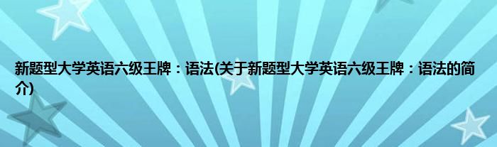1、 《新题型大学英语六级王牌:语法》是科学出版社出版的图书。