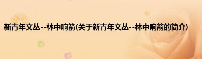 本文关于新青年文丛--林中响箭的简介就讲解完毕,希望对大家有所帮助。